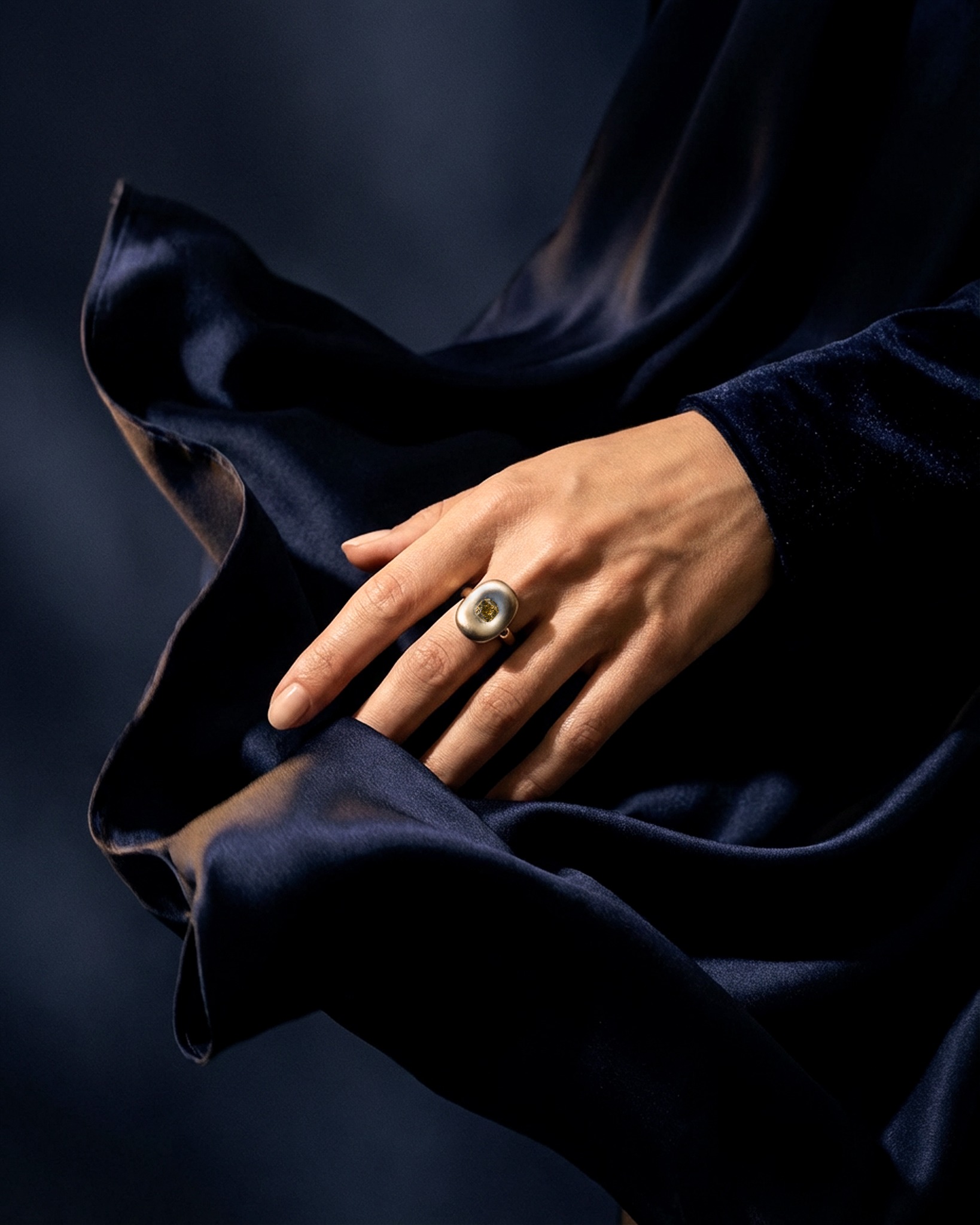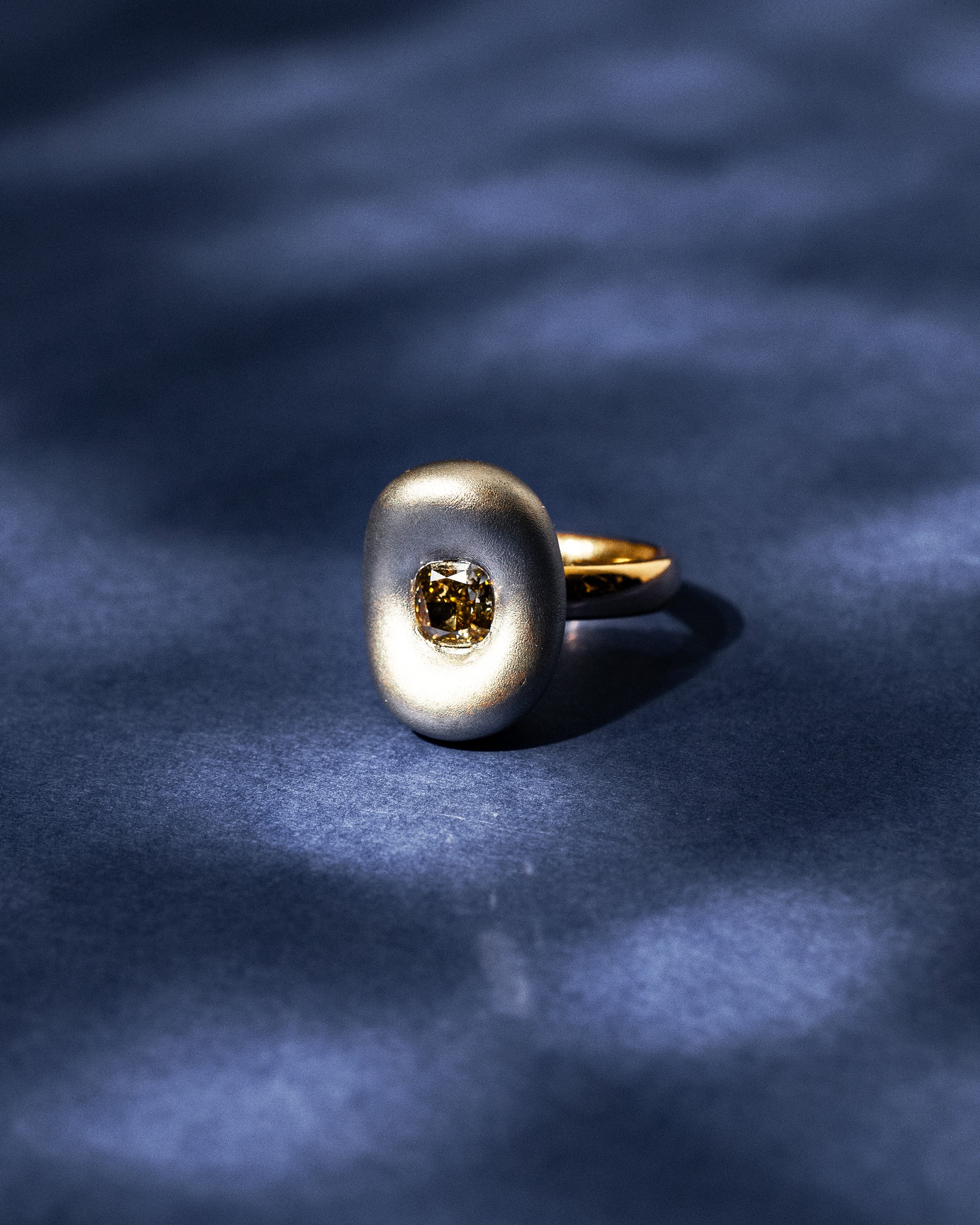 Une création joaillière unique mettant en lumière un diamant aux nuances chaleureuses.